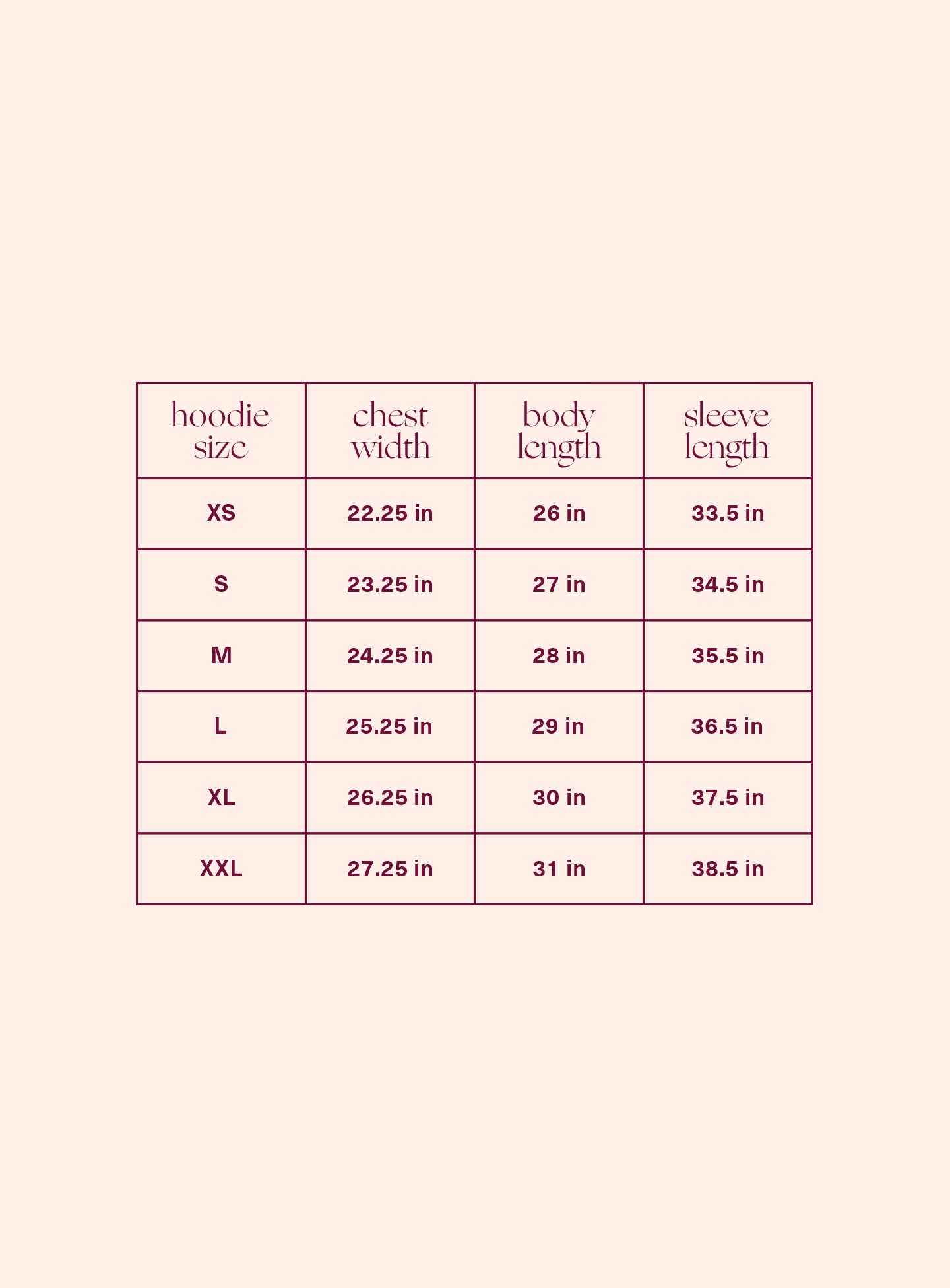 X Small, Small, Medium, Large, X Large, XX Large